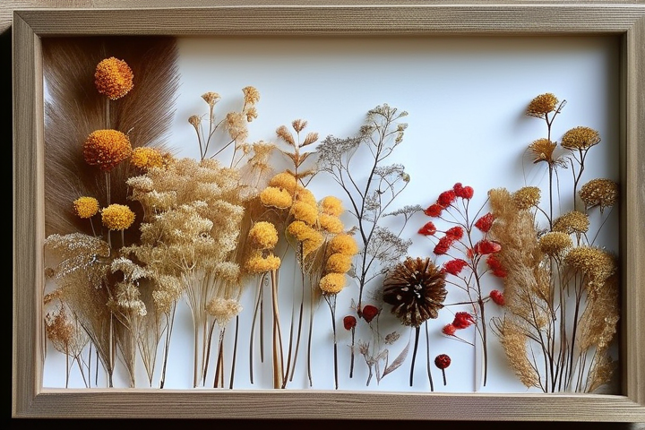 检查一遍你的干花相框,确保所有的部分都已经固定好,没有遗漏,你的干花相框就完成了!你可以将它挂在墙上,或者放在书桌上作为装饰,让你的空间焕发新的活力。